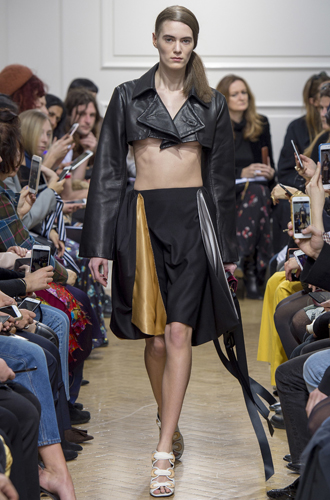 Кроп-топы, казалось бы, – обязательный атрибут весенне-летних показов, однако и здесь британцы переворачивают все с ног на голову, вводя укороченные топы в своих осеннее-зимние коллекции. В грядущем сезоне такие топы, однако, будут сделаны из более теплых материалов, но все же мы не гарантируем, что осенью модницы будут редко болеть (особенно вкупе с трендом №1). При этом посмотреть на бесспорно красивые творения от Versus Versace или Emilia Wickstead никто не запрещает.