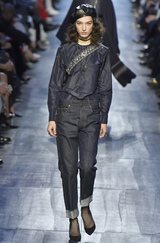 Деним не частый гость парижских подиумов, и тем сильнее эффект от его появления во многих коллекциях французских дизайнеров. На этот раз любимая одежда американских фермеров возведена до ранга haute couture – и все благодаря сочетаниям. Так, Christian Dior создает ансамбль из джинсового комбинезона oversize, женственного жакета и черных лодочек, Louis Vuitton соединяет деним с покроем обыкновенной дубленки, а Dries Van Noten умело создает из джинсовой ткани пальто в технике пэчворк с пуховым воротником.