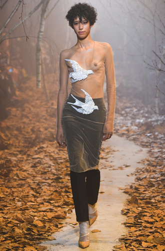 Да, европейцы, очевидно, любят обнажаться, и французы здесь не исключение. Обнаженная грудь стала заключительным и самым провокационным трендом парижской Недели моды, чьи участники пропели настоящую оду прекрасному женскому телу. Lanvin реализует эту идею с помощью шифоновых платьев миди, Saint Laurent и Off-White – благодаря кружеву, а Balmain – с помощью «резаного» золотого топа.