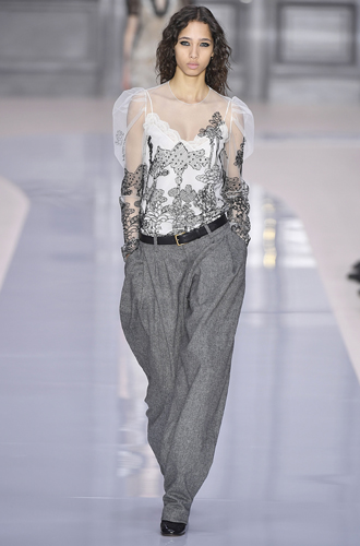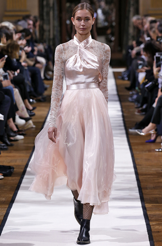 Хотя французская Неделя моды проходила не в Диснейленде, ее участники сделали все, чтобы гости почувствовали себя как в сказке. Обилие нежных романтичных платьев на парижских подиумах позволяет нам сформировать еще один оригинальный французский тренд. Соответствовать ему очень просто: достаточно, чтобы ваш наряд включал в себя женственный А-силуэт, легкие ткани (например, тюль), пастельные мягкие цвета, а также кружево, оборки и воланы. Если же вы чувствуете, что конфетный образ – это не ваше, то смело добавляйте темные акценты, как Christian Dior добавляет в свой образ черный кожаный берет, а Lanvin – колготки в сетку и грубую кожаную обувь.