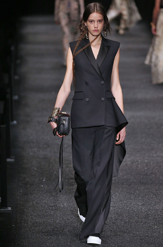 В игру вступает вечное правило пропорций: чем шире плечи, тем уже кажется талия. Это триумфальное возвращение модных 80-х, в которых сексуальность шла за руку с чуть ли не мужской силой. Именно это и знаменуют собой образы от Nina Ricci, Mugler и Isabel Marant, в которых акценты на плечах «смягчаются» либо романтичным низом, либо «женственной» цветовой гаммой, либо распущенными локонами.