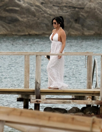 Какая же поездка на Ибицу без посещения вечеринок — решили Лорен Санчес и Джефф Безос, и отправились на одну из таких. Для вылазки на яхту Лорен подобрала длинное платье Missoni с полупрозрачными элементами, кружевом и небольшой баской на подоле. Если выше был плохой пример интерпретации стиля бохо, то этот куда удачнее (особенно для пляжного сезона).