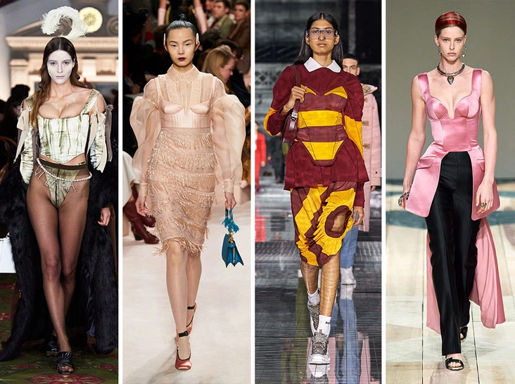 Хотя тренды из прошлого в наше время претерпевают изменения, самые актуальные корсеты в этом сезоне все еще будут напоминать о модном «орудии пыток» для женщин, популярном в XVI веке. Правда, разнообразию на подиумах нового сезона точно позавидовали бы императрицы и придворные дамы: выбирайте модели из кожи, как у Charlotte Knowles и Tod's, или нежного атласа, как у Alexander McQueen и Fendi.