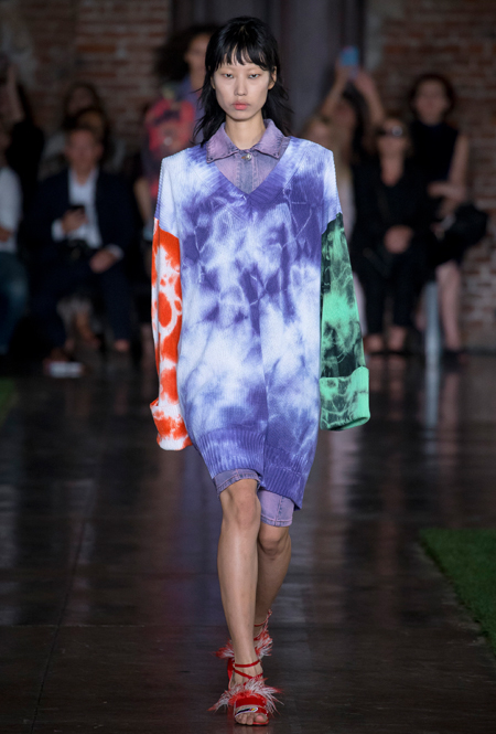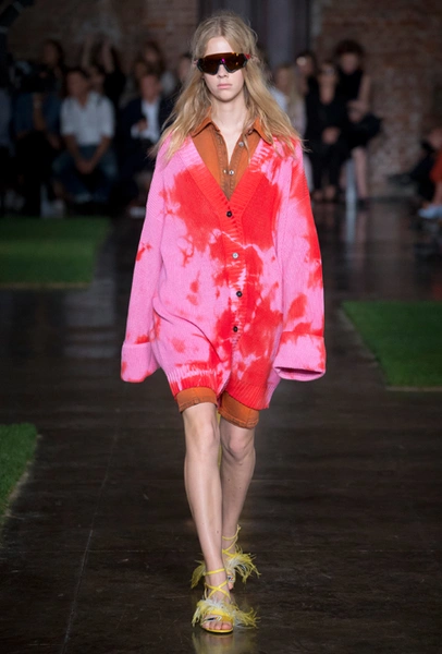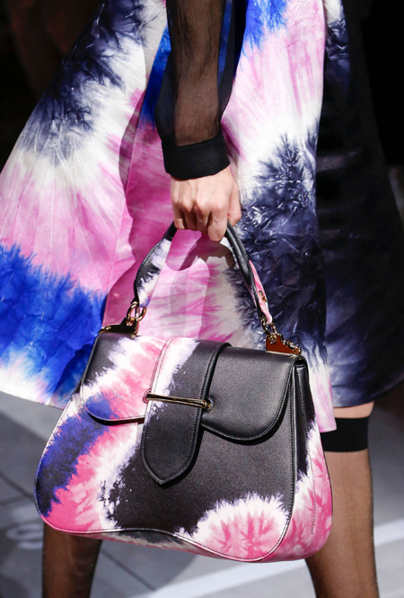 Изначально авторство затейливому принту tie-dye принадлежало субкультуре хиппи: в 70-е футболка с размытым орнаментом была одним из самых главных отличительных признаков принадлежности к движению. Однако сейчас связь принта с историческим прошлым практически утратилась: психоделические узоры, акварельные разводы и выстиранные краски теперь украшают не только фестивальные топы, но и шелковые платья, классические пальто и элегантные сумочки, как у Prada.