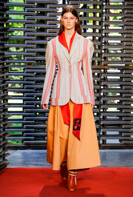 Статус главного подиумного долгожителя по праву носит классический костюм: дизайнеры слегка меняют фасоны и палитру оттенков, экспериментируют с принтами и декором, но двойки из жакетов и юбок или брюк по-прежнему входят в топ важнейших предметов гардероба. В следующем сезоне квадратные оверсайз-фасоны отходят на второй план, уступая дорогу «перевернутому треугольнику» — классическим жакетам с увеличенной линией плеч и осиной талией.
