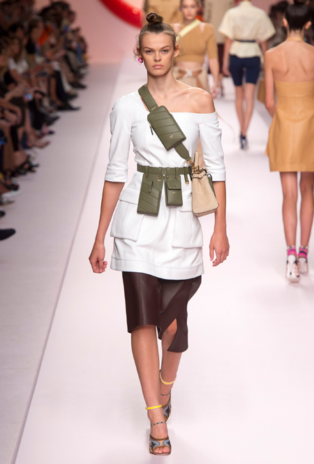 Мода теперь не только красива, но и практична. В следующем сезоне вместительными накладными карманами обрастают объемные жилеты, брюки карго, которые начали экспансию подиумов еще в прошлом году, платья и даже классические рубашки с отложными воротниками, как у Fendi. Такая тенденция явно призвана компенсировать любовь дизайнеров к микро-сумкам: все, что не поместилось в ваш трендовый аксессуар, легко можно распределить по огромным карманам на одежде.