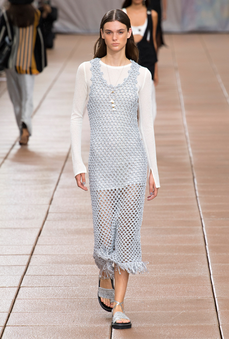 Лучший подарок — подарок, сделанный своими руками, и трендовых вещей для будущего сезона это тоже касается. Те, кто уже давно освоил технику макраме и кроше, смогут побаловать себя новинками самостоятельно. А для тех, кто от творчества и рукоделия далек, дизайнеры представили огромное количество плетеных сумок, платьев, топов и брюк — даже больше, чем мы видели в предыдущих сезонах. Самыми актуальными станут вещи, будто сшитые из рыболовной сетки, украшенной веревками, ракушками и деревянными бусинами. Кроме того, дизайнеры увлеклись ностальгией по недавним трендам и представили ряд вариантов вязаной обуви: похоже, самая спорная тенденция десятилетней выдержки возвращается к нам вновь.