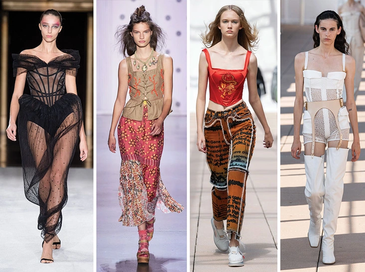 Все напоказ – главная мантра будущего сезона. Отсюда в списке трендов – не только прозрачные вещи, но и нижнее белье, которое теперь рассматривается как предмет искусства. В частности, бельевые корсеты, которые теперь можно (и нужно!) показывать всем. Дизайнеры предлагают носить их как отдельный элемент гардероба (лучше сочетать с классическими вещами, вроде свободных брюк со стрелками), так и поверх рубашек, топов, футболок и струящихся блуз.