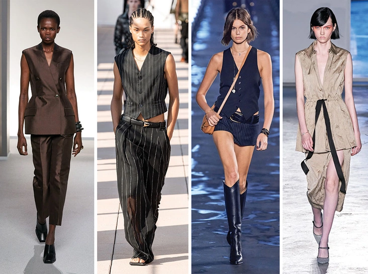 В будущем сезоне нас ждет переосмысление костюма и всех его составляющих: самые актуальные жакеты становятся приталенными, а на смену оверсайз-вариантам невообразимых размеров приходят жилеты. Причем носить их лучше всего на голое тело, как на показах Saint Laurent, Givenchy и Tibi – просто и соблазнительно.