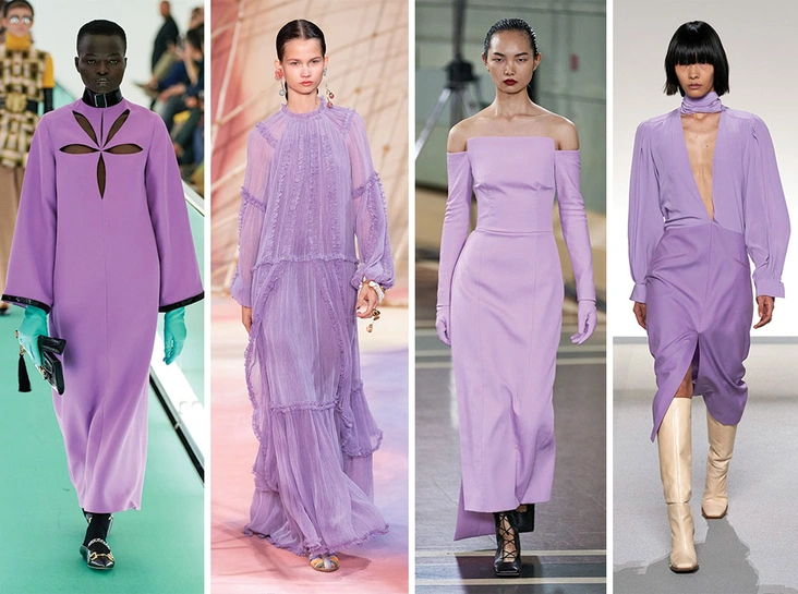 Для тех, кто не желает одеваться в оттенки трендовой фуксии, есть интересная и крайне актуальная альтернатива – нежный лавандовый оттенок. Причем битва между этими двумя актуальными цветами будет крайне ожесточенной: на подиуме свой вариант представили Prada, Gucci, Givenchy, Louis Vuitton и целый список гигантов моды. Лучше всего лаванда заиграет в ансамбле с ахроматическими оттенками – черным или белым – или с нежной пастельной гаммой, например, пыльным розовым, персиковым, аквамариновым и светло-зеленым.