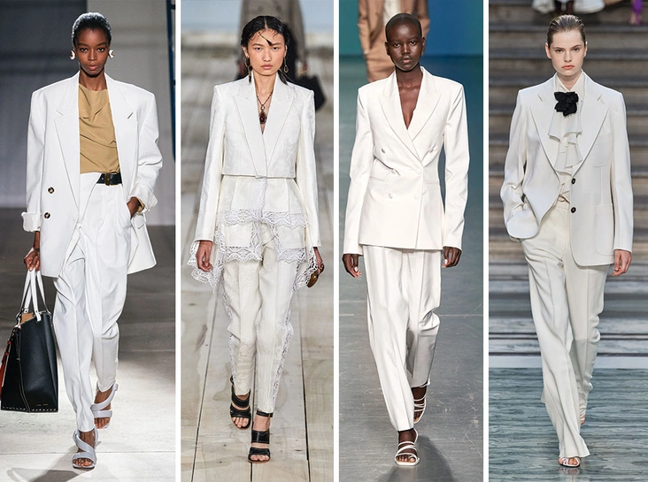 Образами в total-white дизайнеры увлеклись уже давно. Но если зимой такое рвение к непрактичным оттенкам было малоприменимо на территории всей необъятной страны, то весной и летом перспектива одеваться во все белое только радует. Теперь одним из самых главных трендов наступающего сезона был признан классический костюм в светлом оттенке. Если слепящий кипенно-белый оттенок вам не по душе, не менее актуально будут смотреться его вариации: от персикового до сливочного.