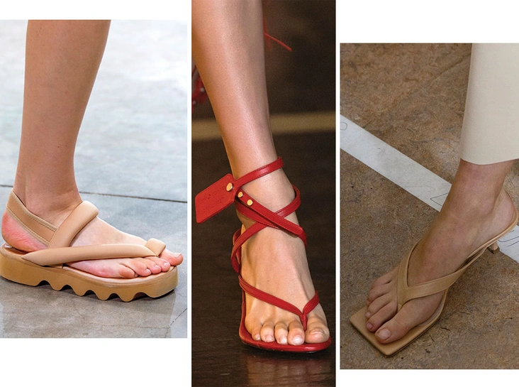 Или, как принято их называть, вьетнамки. В тренде будут даже максимально простые флип-флопы, но дизайнеры на этом не останавливаются и скрещивают их с босоножками и мюлями, создавая более элегантные варианты обуви, которую мы чаще привыкли видеть на пляже.