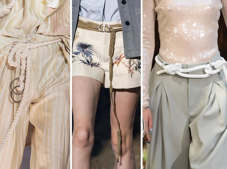 В аксессуарной линейке тоже моментально определился свой фаворит: не сговариваясь, бренды вовсю экспериментировали с шнурками и веревками. В этой стезе и правда есть, где развернуться: можно экспериментировать с масштабами шнурков, комбинировать их с поясами-цепочками или вязать сложные морские узлы.