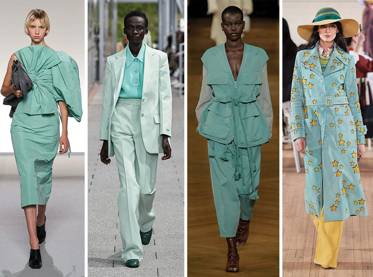Разбеленной палитрой фисташки, шалфея и зеленого чая (каждый называет по-своему) мы любуемся не первый сезон. В теплое время она будет особенно актуальной: бледно-зеленый станет отличной альтернативой для тех, кто не особо жалует белый, а трендовую фуксию считает уж слишком броской.