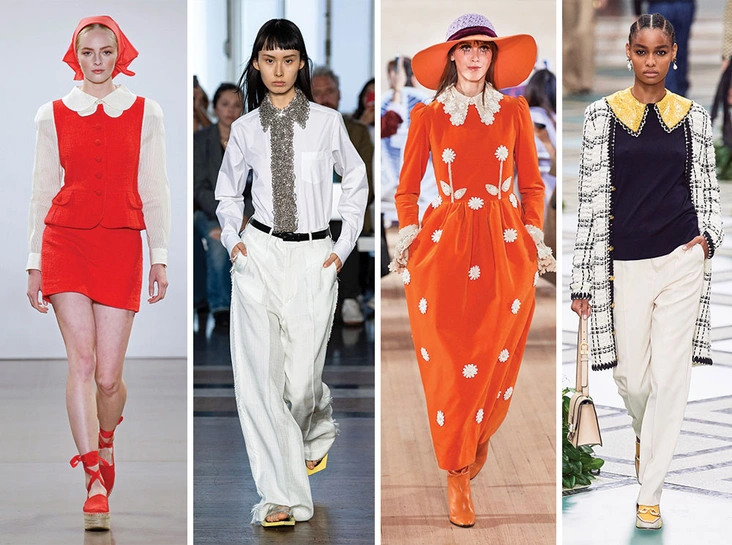 Самое фривольное дополнение нового сезона – акцентные воротнички, отсылающие нас к школьным временам. Такие еще в начале XX века ввела в моду американская актриса Мод Адамс, которая стала известна благодаря роли Питера Пэна. Ее узнаваемый образ и закрепил за воротничками такое название. В новом сезоне дизайнеры решают не останавливаться на одном унифицированном варианте и дать нам простор для фантазии, предлагая кружевные, кожаные, с декором из бисера или жемчуга, а также всех оттенков радуги – выбирайте по душе.