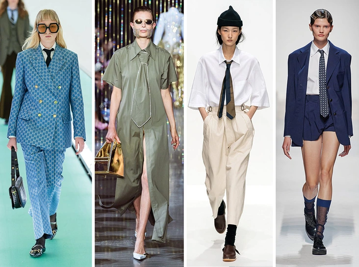 Тренды из 80-х вместе с их гипертрофированно огромными костюмами постепенно сходят на нет, однако некоторые маркеры из гардероба той эпохи все еще остаются с нами. Вместо оверсайз-жакетов (которые, возможно, вам уже успели надоесть) дизайнеры предлагают обратиться к другому известному атрибуту маскулинного стиля – классическому галстуку. Хотя женщины и раньше нередко заимствовали этот аксессуар из гардероба мужчин, в новом сезоне он буквально обретет вторую жизнь.