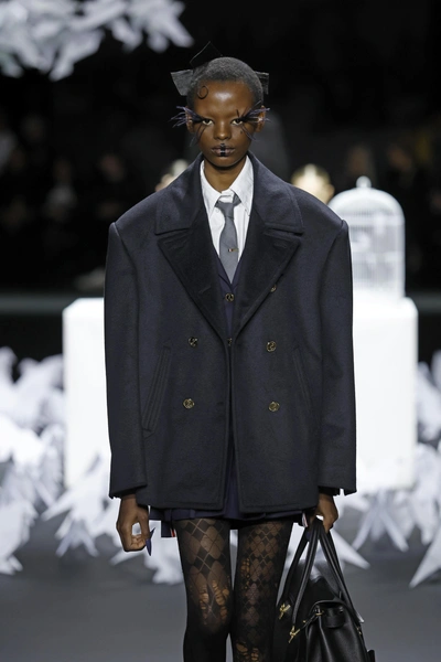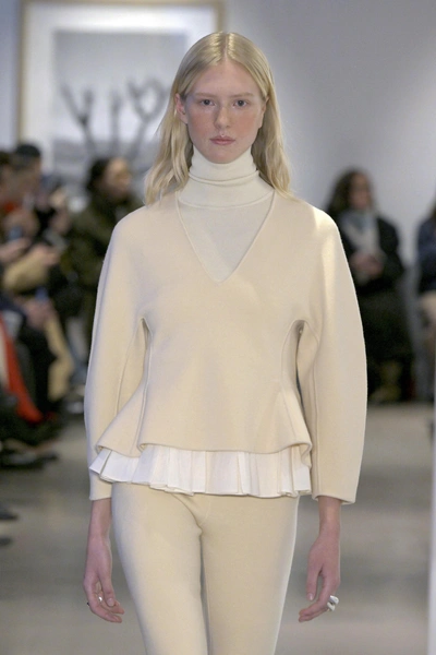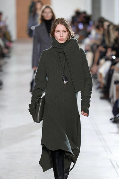 Еще один тренд, говорящий о закате сексуализации женского тела — это большое количество высокого ворота на показах. Если дизайнеры проектируют пальто, то к нему обязательно будет идти шарф или накидка, полностью покрывающие зону декольте. Если речь о пиджаке, то история повторяется: на месте привычного V-образного выреза, мы видим ворот, поднятый на максимум. Правда, тут речь не только о фем-повестке: может, дизайнеры просто заботятся о том, чтобы мы не простыли.
