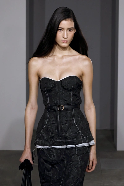 Неожиданный тренд, также перешедший из весенне-летнего сезона — это корсеты. Правда, не все дизайнеры показали классические варианты с открытыми плечами. Некоторые позаботились о нашем здоровье и представили интересный стайлинг-прием, когда мы надеваем корсет на рубашку и футболку. Если речь о фасоне, то в моде будут как классические, так и более динамичные асимметричные варианты.
