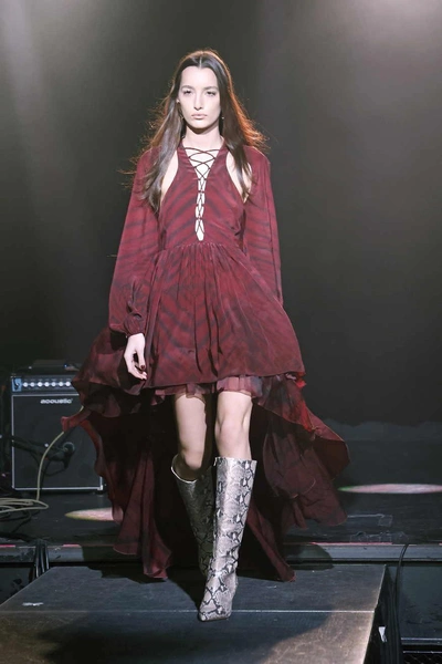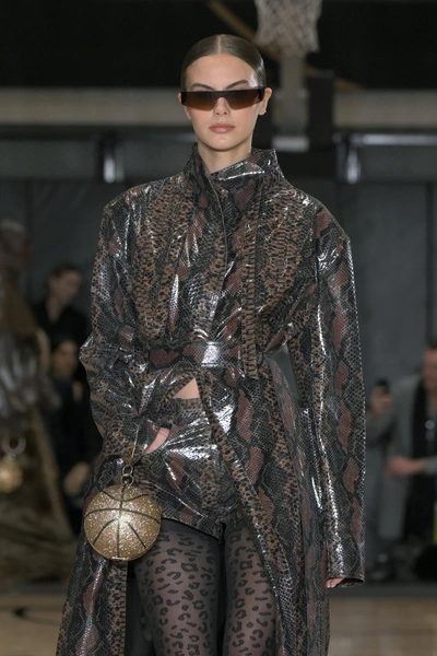 Вместе с цветным мехом, прошлой зимой все открыли для себя леопардовый принт. Не сказать, что сейчас тенденция на него уйдет полностью, но пьедестал придется делить с другим анималистичным рисунком. Змеиный принт будет украшать классические сапоги-трубы на каблуке, но доступны и менее сдержанные варианты — тотал-луки в «чешуе».