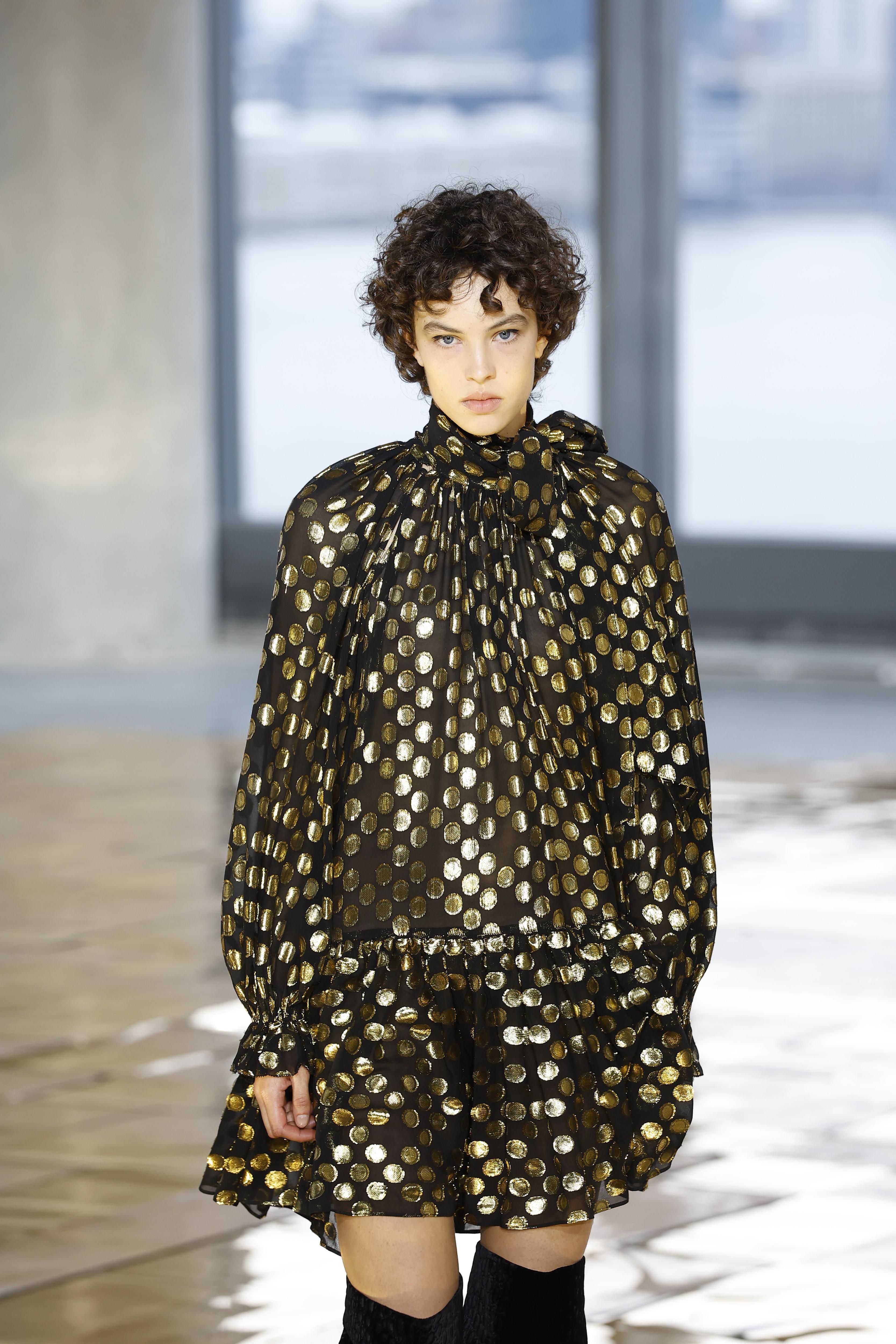 Тенденция на полька-дот была с нами с нью-йоркской Недели моды и до победной парижской, так что можем назвать этот принт полноценным трендом. Раньше он присутствовал в классическом исполнении на платьях и блузах, а сейчас вариаций куда больше: горох видим на верхней одежде, в металлизированном исполнении и на полупрозрачных тканях — как говорится, выбирай любой.