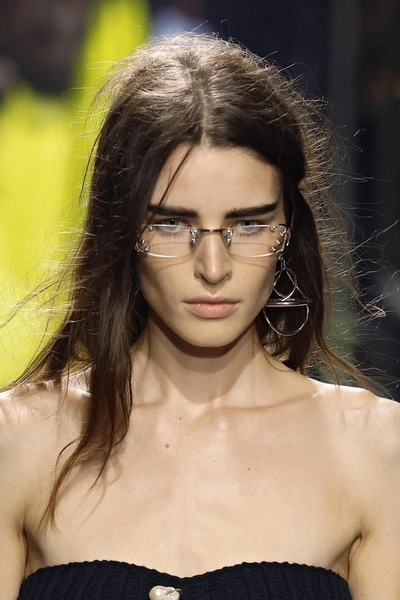 Раньше девушки с плохим зрением избегали ношения очков, так как это считалось чем-то не модным и лишенным лоска. Но в новом сезоне дизайнеры неожиданно показали нам, что больше не нужно подстраиваться под тренды — тренды будут подстраиваться под нас. Поэтому видим много вариаций оправ для зрения на прошедших шоу: от толстых черного цвета до еле заметных прозрачных и серебряных (читайте также: Футуристичные и «занудные»: 10 модных очков на 2025 год, которые стоит купить уже сейчас).