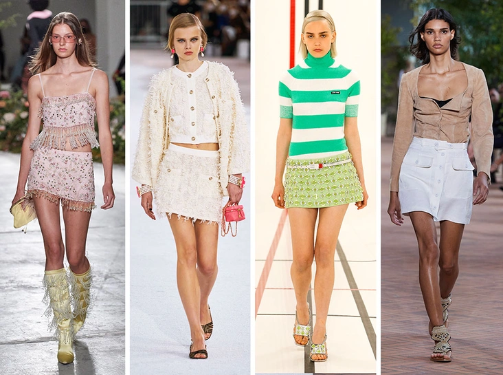 Самые трендовые юбки этого сезона — теперь не мини, а микро. По фасону они напоминают модные варианты из 90-х, в которых вовсю блистали культовые супермодели в кампании Versace 1995 года. На этот раз целый сонм дизайнеров, включая Miu Miu, Coperni, Blumarine и LaQuan Smith, воссоздали их в самом ярком проявлении, безумных расцветках и с красочными принтами — лучшее дополнение для летнего гардероба 2021.