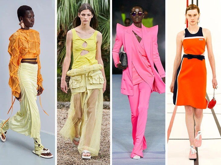 Не успели мы распрощаться с неоновыми цветами из 80-х несколько сезонов назад, как они вернулись к нам вновь. Но уже с новым посылом и без отсылок к трендам 40-летней давности. Слепящая фуксия, ядовито-желтый, кислотно-оранжевый — все это дизайнеры снова явили миру на подиумах, причем не только в тотал-луках, но и в ансамблях в стиле «колор-блокинг» — для тех, кто не боится привлекать внимание.