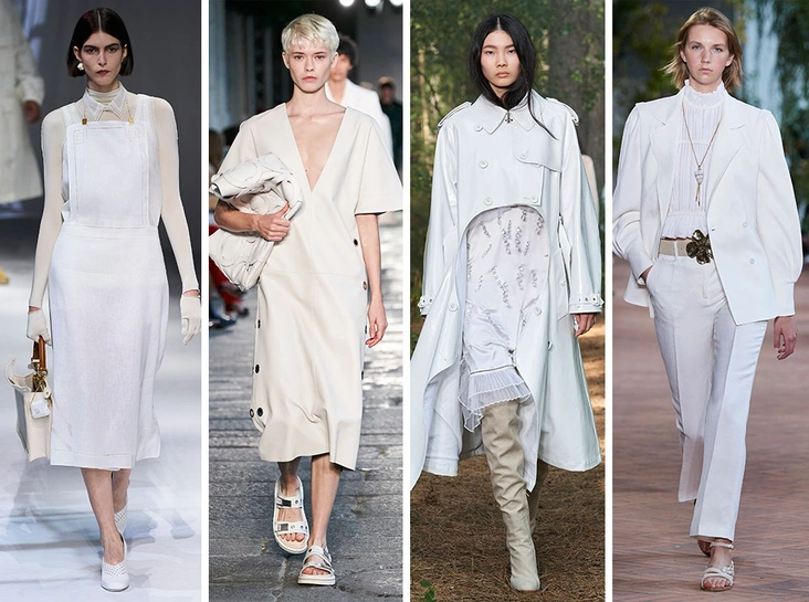Самый базовый и простой в сочетаниях и в то же время сложный цвет сезона. Сложность оттенка заключается не в том, что он может быть непрактичным и марким в наших широтах, в том, как сделать total-white интересным и небанальным. Правда, у дизайнеров и на это есть своя заготовленная инструкция. не бойтесь необычного кроя который по-новому раскрывается в белом воплощении и не игнорируйте необычную обувь, которая поможет правильно расставить акценты.