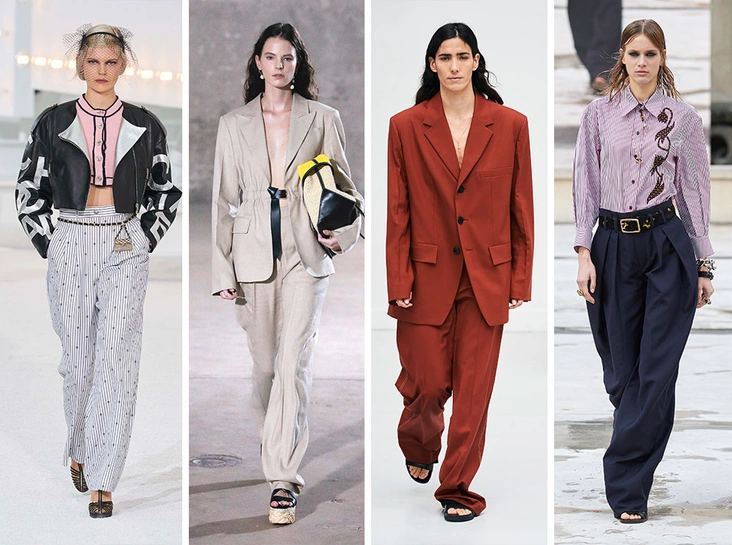 За последний год количество передвижений в офис сократилось: теперь многие сотрудники работают в удаленном режиме. При этом деловые костюмы, которые обожают не только работники офиса, все еще остались в наших гардеробах, однако от структурных и строгих они сместились к более расслабленным и повседневным силуэтам. Особенно свободными и комфортными стали брюки — теперь они, скорее, напоминают мужские модели. Самые идеальные как раз-таки можно присмотреть в гардеробе бойфренда или супруга — с широкими штанинами и заниженной линией талии.
