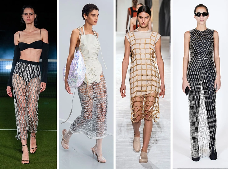 Вещи-сетки в этом сезоне — скорее, необычный аксессуар и стильное дополнение к образу. Может показаться, что дизайнеры решили просто пофантазировать на тему современной кольчуги, однако у этого аксессуара действительно есть практическая польза. Например, дополнив базовую комбинацию платьем-чехлом из сетки, вы можете совсем не переживать об аксессуарах — образ и так выглядит завершенным.