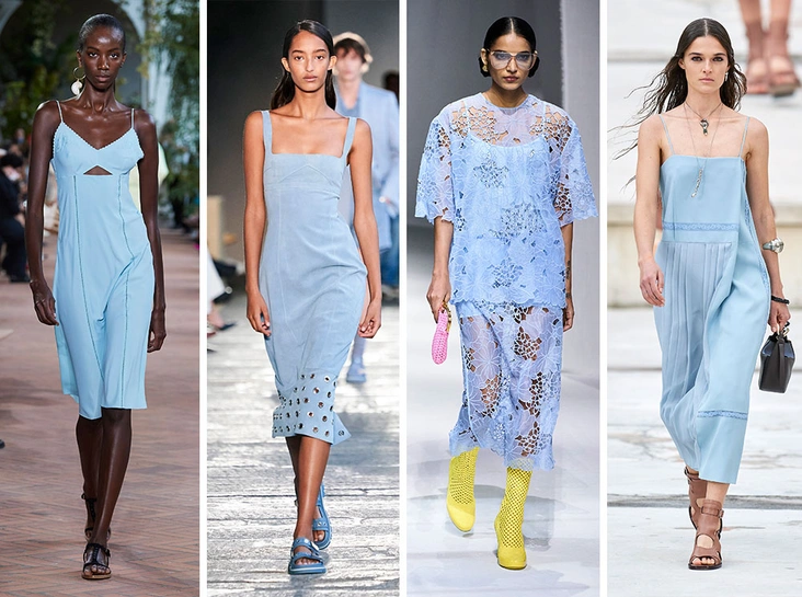 Светлый, нежный и воздушный — именно тот оттенок, которого так хочется летом. И идеальный компаньон для другого трендового цвета сезона — розового «бабл-гам». Наглядную инструкцию о том, как носить эти два оттенка, можно присмотреть на шоу Fendi. Однако и соло небесно-голубой проявит себя как нельзя лучше.