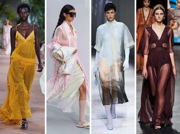 Легкий, невесомый и воздушный шифон очаровал многих дизайнеров в этом сезоне. Этот материал долгое время был одним из составляющих гардероба Dior и фирменной фишкой креативного директора Марии Грации Кьюри (любимые воздушные платья в пол она демонстрирует практически в каждой коллекции). Однако в новом сезоне другие бренды также представили свою идеальную вариацию невесомых вещей на лето — и они выглядят не менее стильно. Советуем особенно присмотреться к легким прозрачным брюкам, которые можно носить с удлиненным пиджаком (наглядная иллюстрация — у Acne Studios), а также платьям-чехлам, которые стоит носить в паре с лаконичной комбинацией.