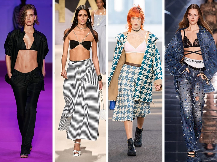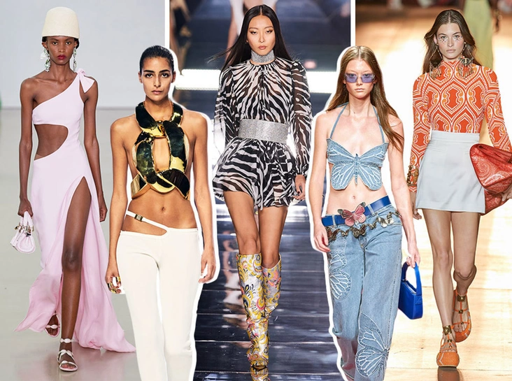 Нулевые пришлись по душе поколению Z, которые не успели прочувствовать на собственном опыте все самые неожиданные и безумные тенденции этой эпохи и с радостью носят топы с бабочками и стразами, джинсы с заниженной талией и платья с воланами из полупрозрачных материалов сейчас (читайте также: Беспощадный гламур: 10 трендов из 2000-х, которые актуальны снова). Одним из главных трендсеттеров нового сезона стал бренд Blumarine, который посвящает нулевым далеко не первую коллекцию. Кроме того, советуем обратить внимание на микро-юбки с заниженной посадкой от Miu Miu и красочные образы из коллаборации Versace и Fendi.