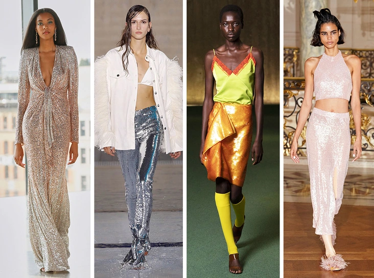 Нашу тоску по вечеринкам дизайнеры с удовольствием восполнили в новом сезоне. Весной и летом мы будем с ног до головы осыпаться блестками и носить их не только по особому случаю, но и каждый день. Сочетайте сверкающие брюки, усыпанные переливающимися блестками, вместе с оверсайз-пиджаком из офисного гардероба. Или дополните слепящую глаза мини-юбку классической белой рубашкой — в ход пойдут все ваши любимые предметы гардероба.