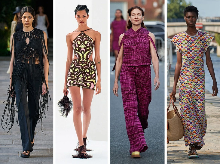 Трикотаж давно потерял любую связь с зимним сезоном и теплым гардеробом и прекрасно ладит с летними тенденциями. Обратив внимание на кроп-топы и брюки-клеш из легкого и тонкого трикотажа, которые стоит дополнить массивными босоножками на платформе и сумкой с бахромой.