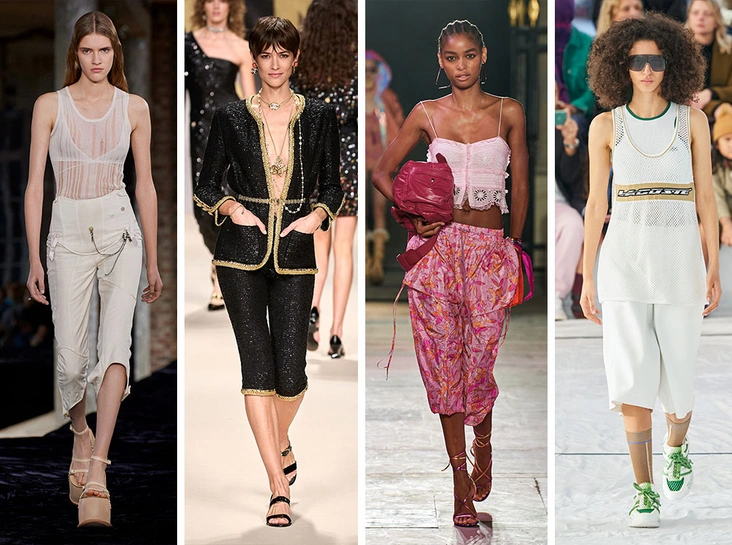 Еще одна важная метка нулевых — бриджи. Если прошлым летом мы вовсю экспериментировали с бермудами, то сейчас в моду входят облегающие варианты, которые мы носили 20 лет назад. Если брюки ярких оттенков вам не по душе, присмотрите себе модель из денима, которая отлично поладит с босоножками с минималистичными завязками или трендовыми платформами.