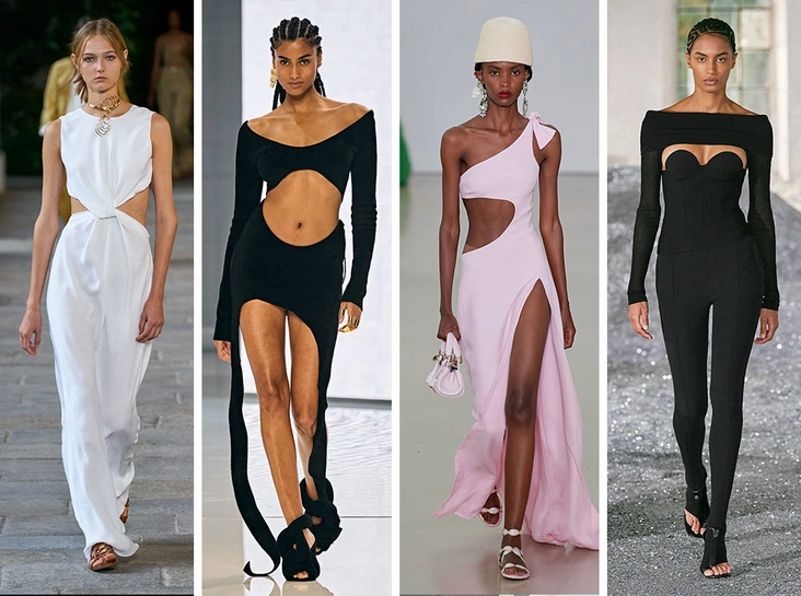 Вырезы, которые уже второй год во всей красе лидирует в списке тенденций, остается с нами и в этом сезоне. Такая любовь к этому тренду вполне понятна: вырезы в самых неожиданных местах выглядят пикантно, однако в сочетании с лаконичными фасонами — совсем не вызывающе или вульгарно. Если хотите присмотреть себе классическую модель, делайте выбор в пользу лаконичных платьев в пол из трикотажа. Если же готовы на более смелые эксперименты, присмотритесь к необычным боди Nensi Dojaka или комбинезону Christian Siriano — в таких нарядах точно не останетесь незамеченной (читайте также: Самый смелый тренд: где искать вещи с вырезами (и с чем их носить)).