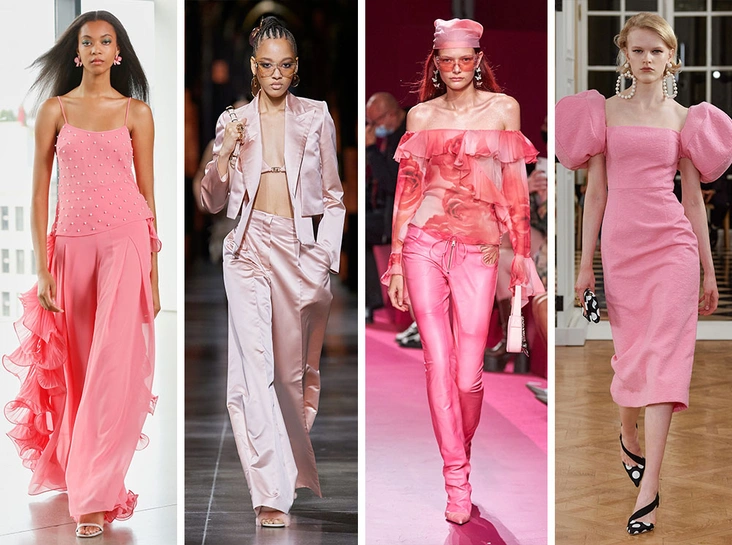 Почетное место в трендовой палитре сезона занимает нежно-розовый. За триумфальным возвращением этого цвета уже наблюдали прошлым летом и совсем не против, если этот универсальный оттенок продолжит останется с нами еще на год. В новом сезоне носите его в тотал-луках, как на показах Blumarine, No. 21 и Fendi — аутфит будет выглядеть завершенным, а вы при этом потратите на составление образа минимум времени.