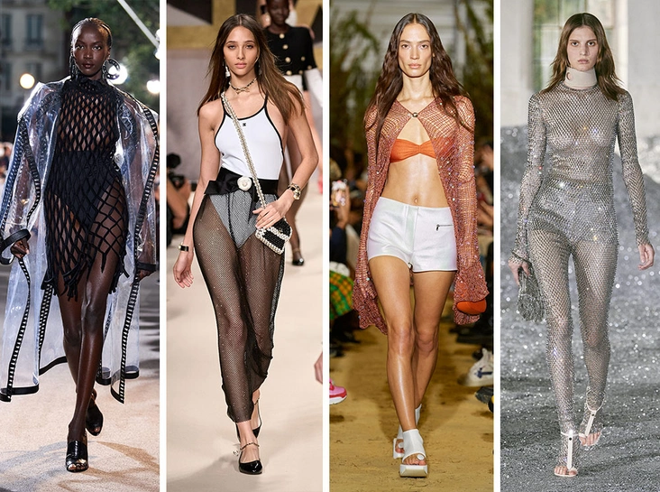 Сетка станет в вашем образе, скорее, актуальным дополнением, чем ведущим предметом гардероба, но точно будет многофункциональной вещью, которая пригодится как в городе, так и во время отпуска. На пляже носите длинное полупрозрачное платье с базовым купальником, а в городе сочетайте его с кроп-топом и классическими брюками или леггинсами.