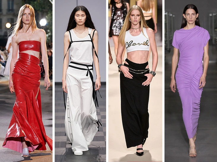 Главный антагонист трендовых мини-юбок — длинные модели в пол. Такие варианты всегда выглядят женственно и элегантно. Самые актуальные модели — юбки лаконичных оттенков с заниженной талией (так объедините сразу два тренда в одном). Если рисковать пока не хотите, присмотрите себе легкое струящееся платье в стиле минимализм — идеальный вариант на лето (читайте также: Исторический максимум: 150-летняя эволюция длинных юбок).