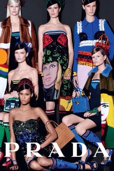 На днях появился единственный снимок новой рекламы Prada. Темы весны 2014 — граффити, поп-арт и яркие цвета. На фотографии, сделанной Стивеном Майзелом (Steven Meisel) — Анна Эверс (Anna Ewers), Синди Бруна (Cindy Bruna), Ола Рудницка (Ola Rudnicka), Сабрина Иоффреда (Sabrina Ioffreda), Джулия Бергшефф (Julia Bergsheff) и Маарджан Ридалаан (Maarjan Ridalaan).