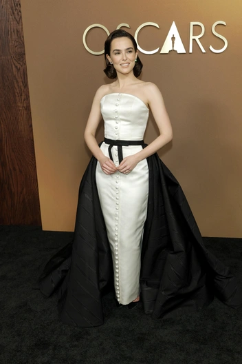 Были и те, кто встали исключительно на светлую или темную сторону. За total black отвечали Эмма Стоун в Louis Vuitton, Гвинет Пэлтроу в Dries Van Noten, Хейли Стайнфелд в Stéphane Rolland, Ренате Рейнсве в Louis Vuitton, Джесси Бакли в The Row, Мишель Заунер в Rodarte, Кейт Уинслет, Изабела Мерсед в Dilara Fındıkoğlu. А вот белый выбрали Сидни Суини в щедро расшитом кристаллами Miu Miu, греческая богиня Дженнифер Лоуренс в Dior, Чейз Инфинити в экстравагантном Louis Vuitton, Аня Тейлор-Джой в, пожалуй, самом виральном образе Maison Margiela из кутюрной коллекции Гленна Мартенса и Тейана Тейлор в сверкающем Miss Sohee.