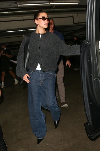 Винтажные вещи и образы в ретро-стиле стали популярны в России только летом 2024 года, а на Западе их вовсю носили еще с конца 2023 года. И одним из адептов ретро ожидаемо стала Хейли Бибер, которая буквально чувствует тренды, которые скоро станут популярны. В своей «винтажной эре» Хейли носила туфли с квадратным носом, свободные поло с длинным рукавом и принтом а-ля 90-е, широкие кожаные пиджаки и, конечно, джинсы, которые были на пике моды до начала 00-х.