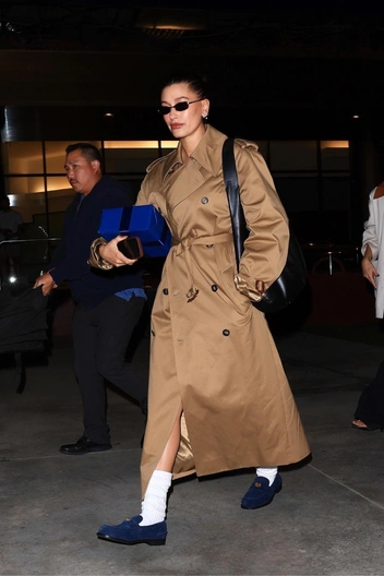 Будничный гардероб Хейли — это своего рода пособие по тому, как выглядеть невероятно стильно в очень комфортной одежде. Иногда в своих повседневных образах Хейли применяет самые «горячие» тренды — очки с оправой в стиле «офискор», большую сумку, кроссовки Adidas. А порой выбирает «вечные» вещи — например, бежевый тренч. Ну и не можем не отметить: подбирать лоферы Hermes к цвету подарочной коробки — это, конечно, сильно.