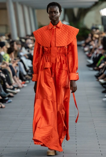 Самую желанную (и довольно броскую) вещь предлагает нам Jonathan Simkhai: дизайнер интегрирует в романтичную коллекцию яркий огненный бомбер с переливами шафрана и апельсинового цвета – безусловный хит будущей зимы и следующего лета.