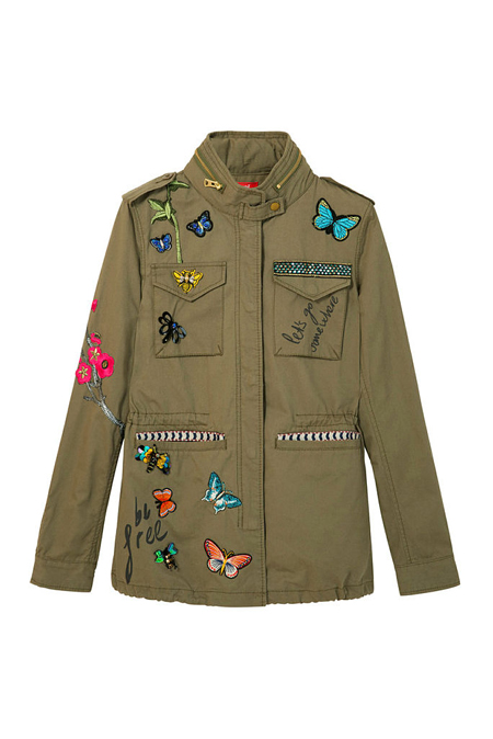 Легкий белый сарафан, а поверх – куртка в стиле «милитари» с модными крупными карманами. Отличный и небанальный вариант для майского пикника. Вам не страшны холод и дождь, а если боитесь испачкаться, молнию можно застегнуть.