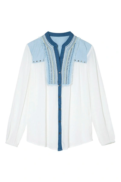 Джинсы и белая блузка с модными этим летом цветочным принтом и скошенным подолом – отличный вариант для прогулки по городу! Вместо сумки возьмите с собой черный кожаный рюкзак. Во-первых, это удобно. Во-вторых, придаст образу легкий рок-н-ролльный налет.