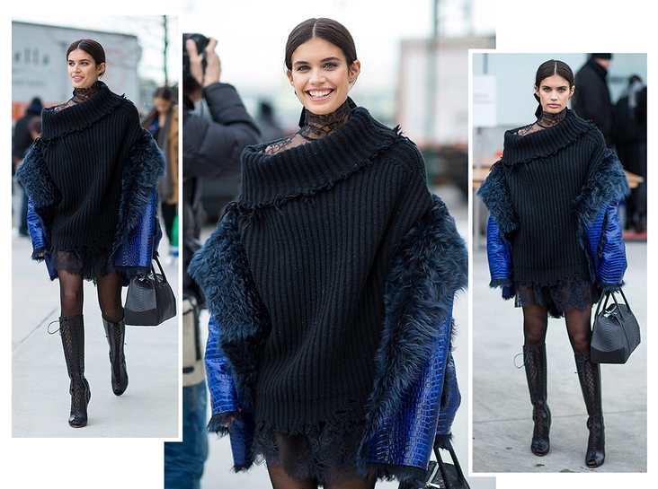 Все они демонстрируют короткую длину платья-свитера, но такой вариант — отнюдь не единственный. Высокие сапоги можно надеть и с макси, взяв за основу расслабленный образ Миранды Керр.