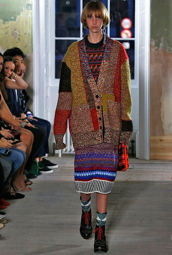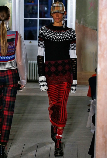 Если все эти комбинации кажутся вам сложными и избыточными, самый просто способ носить платье-свитер — сочетать его с тяжелыми ботинками в гранж-стиле. Чтобы гранж получился не мрачным, а богемным, обратите внимание на образы из осенне-зимней коллекции британского Burberry, в которой Кристофер Бейли сочетает сразу несколько трендов: пэчворк, оверсайз и уличную моду.