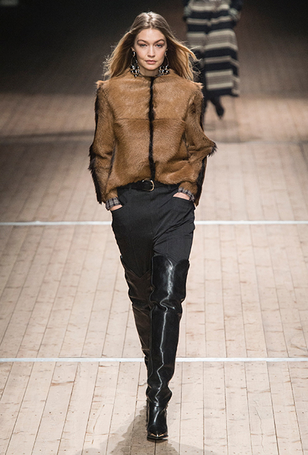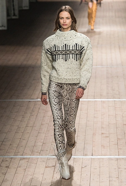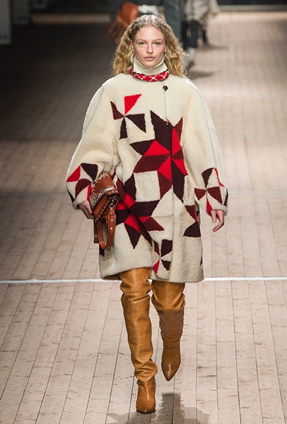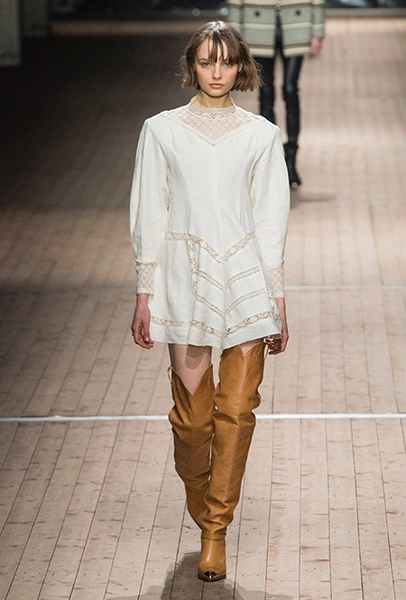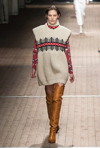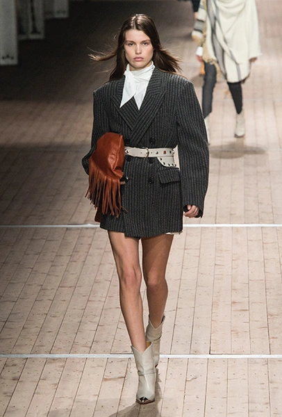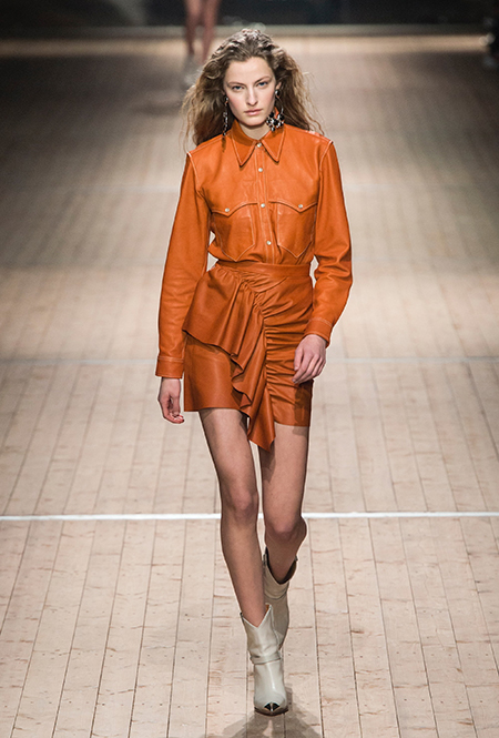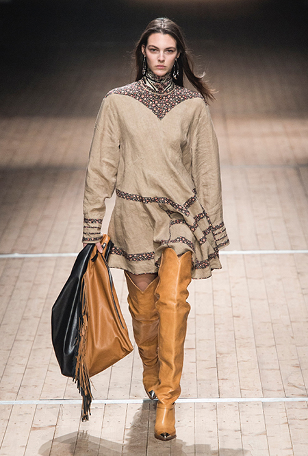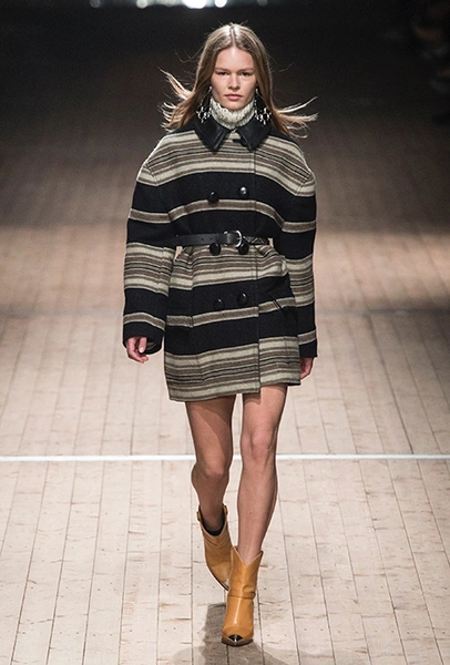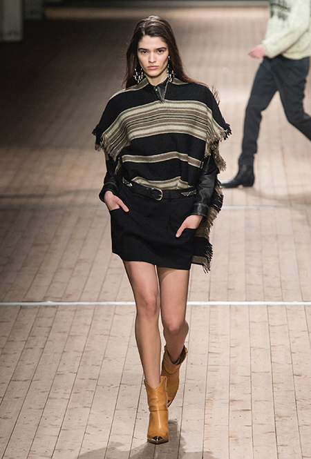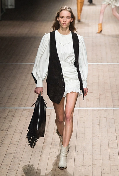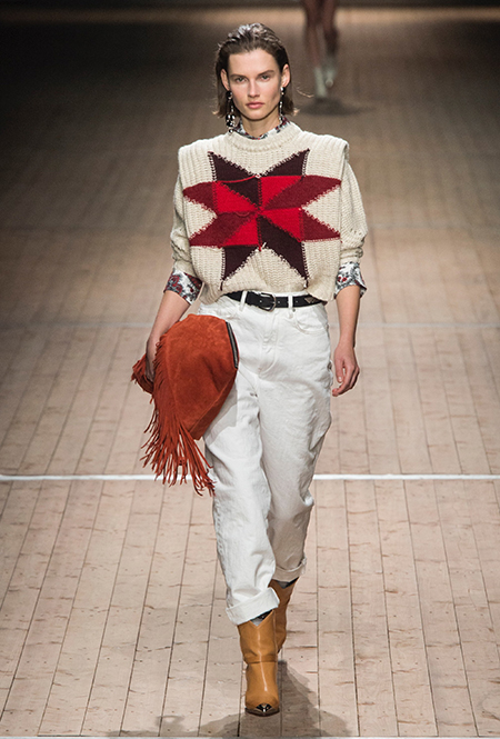Поддавшись общему соблазну, в своей работе Изабель Маран обращается к американской тематике. Дикий Запад в ее новой коллекции получает довольно интересное прочтение: ковбойские рубашки, высокие и не очень сапоги, жилеты и трикотаж с вышивкой, напоминающей традиционные рисунки американских аборигенов – все это и многое другое и появилось на подиуме мадемуазель Маран. На вопрос о вдохновении, дизайнер за кулисами показа пошутила: «Барби и Дональд Дак!». На самом деле, конечно же, нет: новая коллекция Маран – «интерпретация классического Запада – как в фильмах Джима Джармуша и Клинта Иствуда».